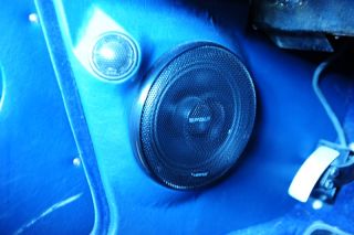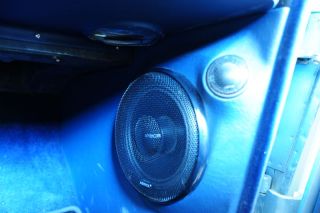 Great job with your system! Love the idea of the subwooker in the spare! I ended up having a set of new kcks put in with the slimmest speaker I could get which was Hertz. I'm not sure how the car installers do it but they custom make the kicks and I ended up buying some extra material from Heritage Upholstery to match originals kicks that I now have in storage. Don't really lose much foot room given I was blessed with size 12's!