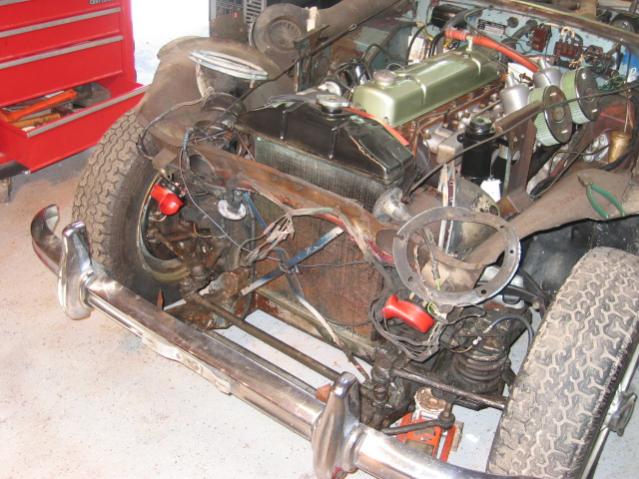 Here's a parting shot of the Healey in the clean garage (only littered with BMWs...) just a few days ago: