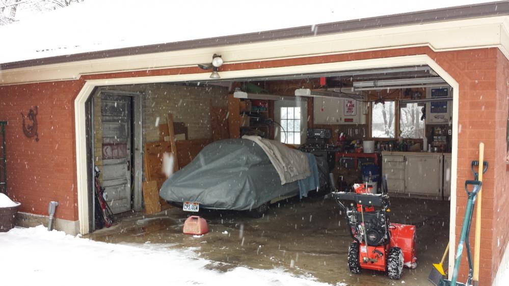 Here's a picture of my garage taken only a few minutes ago. The snowblower is getting more use than the Healey these days...