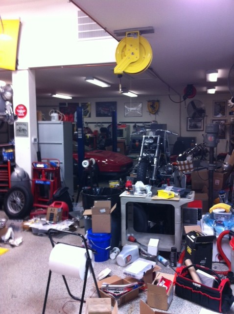 After being on this forum a few years and looking at photos of Healey owners home restoration projects, its really funny how our garages seem to take on the same look...even the way we stack the body panels against the wall.. I just happened to check out Andys project from Auckland New Zealand and was struck that even though he is on the other side of the globe down under.....our garages look almost identical! It would be fun if other Healey restorers would post a few photos of there current and past garage projects as well to this new post.:hammer: