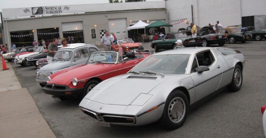At the event I say about 50 cars including Alfa Romeo, Lambourghini, Ferrari, Maserati, Datsun Fairlady roadster, Fiat, MG, Triumph, Lotus, Jaguar, Renault Alpine, Panhard, Turner (think pre-Bugeye fiberglass), Austin-Healey, and one Nash.