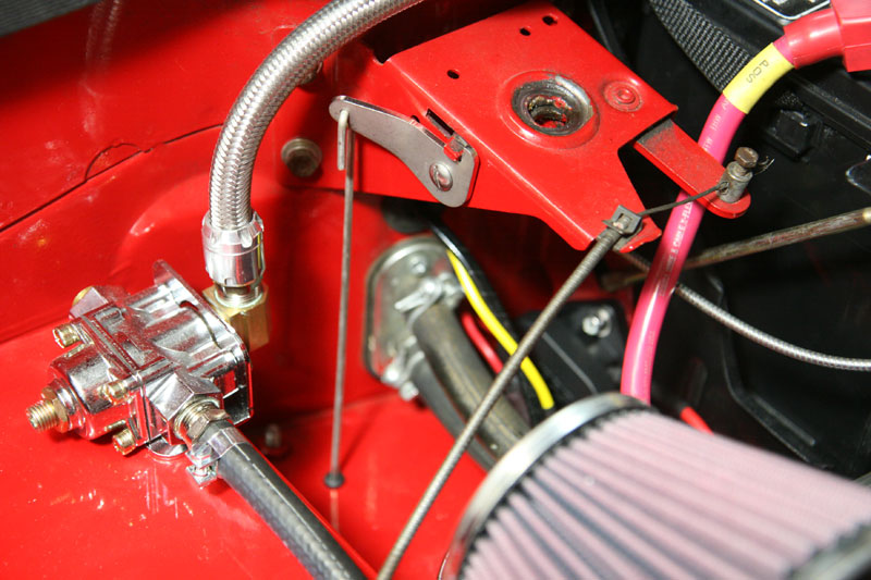 One of the cool things about the TR4-6 is the front-tipping bonnet. But every owner has probably heard horror stories about the release cable breaking, and the recommendation is to install a back-up cable. I've never had my cable fail, and never installed a back-up because I couldn't find a neat way to do it.