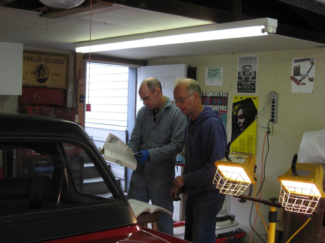 Below, PSJ and Bill M. consult the manual in Phil's "upper" garage