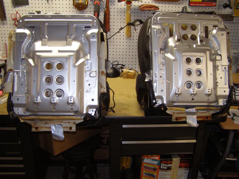 This morning was a good time to get rid of the Hog Rings the easy way and get the seat cushion pans ready for paint with some POR15 Rust Remover.