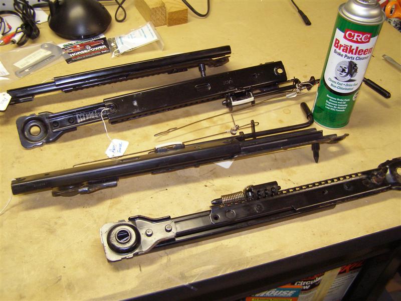 Seat tracks are all cleaned and degreased and straightened to fit the adapter kit. Now I have to cut off the studs and grind down a few ridges and paint those guys. Then a re-lube of the rollers and tracks and they'll be ready.