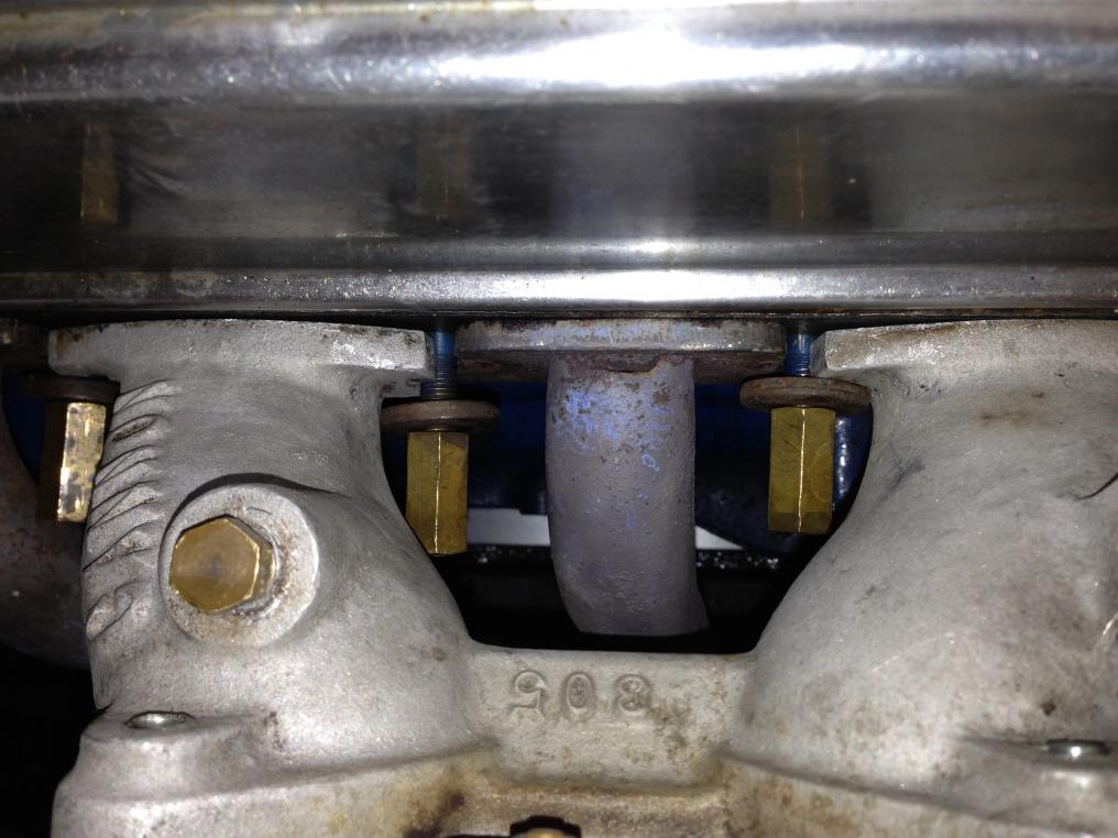 So I milled some aluminum stepped washers to compensate for the 3.3 mm difference in flange thicknesses. Added stainless washers to spread the pressure from the manifold nuts. Hope the Al doesn't crack.