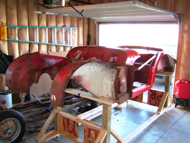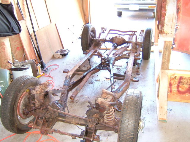 Once the body is restored, then it's time to separate it from the frame again and strip them both for a trip to the media blaster. Just before it's trip to the blaster is when the body and frame look their ugliest and most derelict, even though you know everything is perfectly aligned and ready for the next step!
