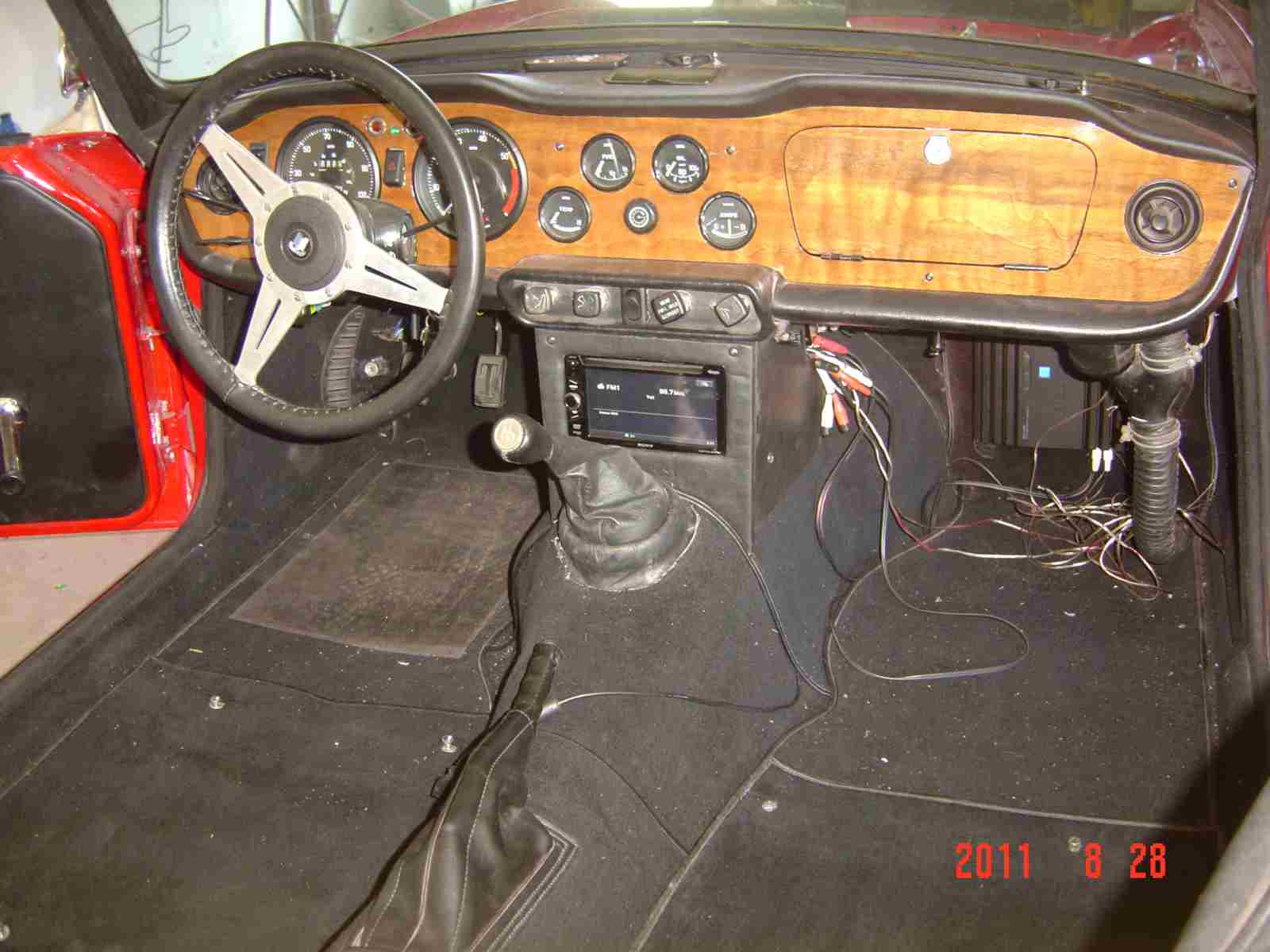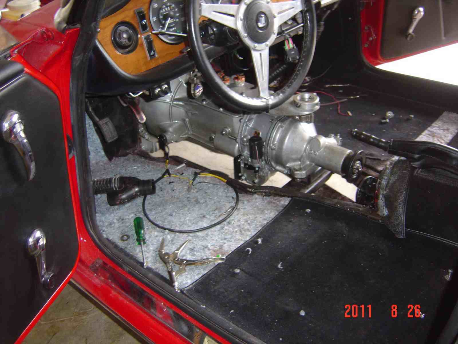 With overdrive, the TR4A and TR6 transmission tunnel covers came with metal cover plates on both sides of the tunnel for access and the one on the passenger side also had a bulge to accomodate the angled speedometer drive.
