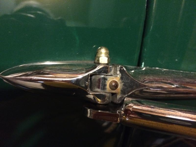 Russ, been there done that on the heart, glad all went well. Here are some pictures of my hinges, the original luggage rack came with the car. Mine have bolts in them, not pins.