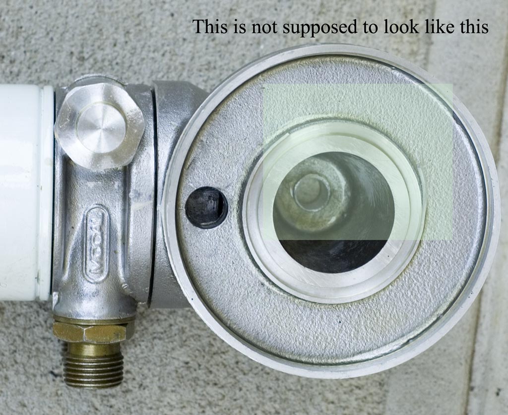 If you didnt convert to a spin on filter you don't have one. The problem with it is highlighted in green. The lip that holds the seal is not there any more. Thats not good for the integrity of the system. Not good at all.