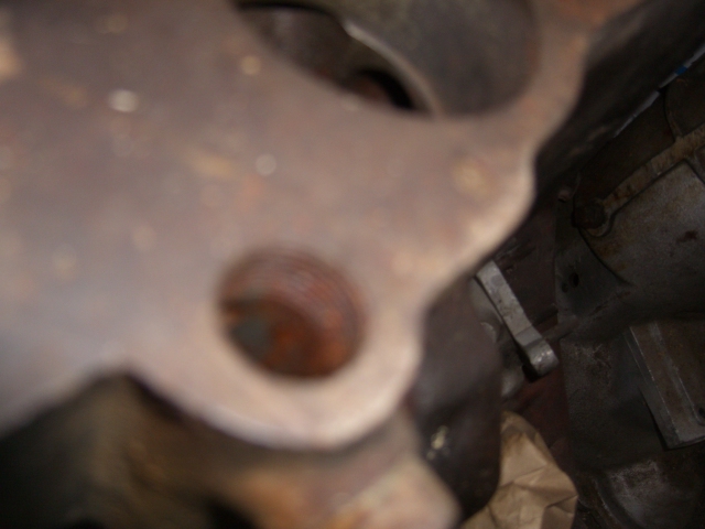 It's been one of those days. We think alike, Steve...I pulled out the torch and started heating the threads to melt out the aluminum. I quickly realized that if it melted, it would blob down into the oil gallery. I had second thoughts.