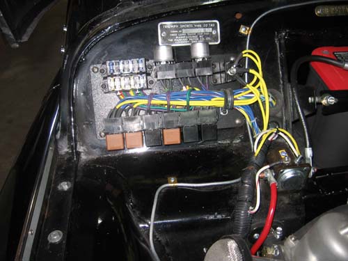 Not a bad setup at all; but I wound up keeping the original harness and just adding the features I wanted. The fan relay came incorporated with the adjustable fan control, so I didn't need that relay in the "Power Block" and I don't have an electric fuel pump, so that relay wasn't needed. The original solenoid on a TR3 draws very little current, so I don't feel a second relay is needed there either.