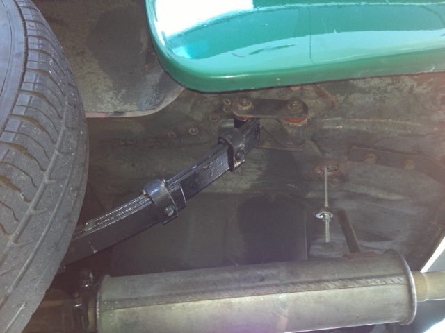 Moss technical said that shouldn't be a problem. Struggled for 3 days and finally got them in after removing the rebound straps and the exhaust pipi and muffler. Back on the ground there is no way the straps will go back on and the muffler will have to mounted farther from the chassis. Seems to me the have to be "rearched". Not sure how that gets done. Anybody with similar experience. Do I need rebound straps? Also the shackle is horizontal up against the underside of the trunk box. Addendum 7/17/2013: the springs are fine. I somehow finished the spring installation with the shackle held horizontal and tight up against the chassis preventing the spring from compressing. It was easy to coax it down past 45 degrees from horizontal and from there the spring lengthened under compression and pushed the shackle to vertical as it should be. Moss 265-490 works on early square body sprites like my '66 MkIII.