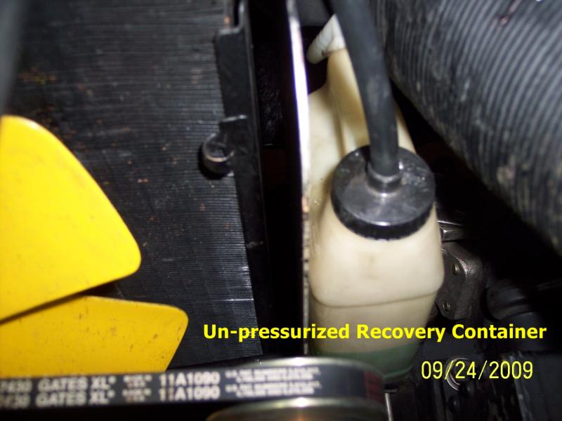 i drilled a hole in the top of the bottle and slid in some clear tubing i had bought. i pulled the black overflow hose on the radiator out of it's clips and routed it behind the fender brace. i did not want to cut the black tubing in case i decide to put it back the way it was. i could have drilled the hole in the cap as opposed to the bottle. in the cap it would have made it easy to take the cap off and empty or clean the bottle. but drilling in to the bottle made the cap look a little cleaner. So that is the way i went. it took about 2-1/2' of tubing to reach the end of the radiator drain tube and i connected with a plastic barb fitting.