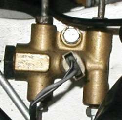 Thanks everyone. Here's the newly installed rebuilt PDWA wired to the black/white wire from my harness. The circuit seems to work exactly as described in the Masters handbook. With the key in the 1st position, both the brake and oil pressure warning lights glow dimly (each receiving 6 volts). Within a second or two after start-up, once oil pressure comes up, both lights go out.