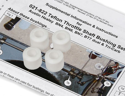 Teflon not only has a longer life than the original materials, it flexes less so your throttle reacts as fast as your foot hits the go-fast pedal. If your throttle linkage is loose or sluggish, it's probably because your original bushings have disintegrated. Replace the original felt or rubber/brass bushings with our Teflon upgrades. Fully illustrated installation instructions are included.