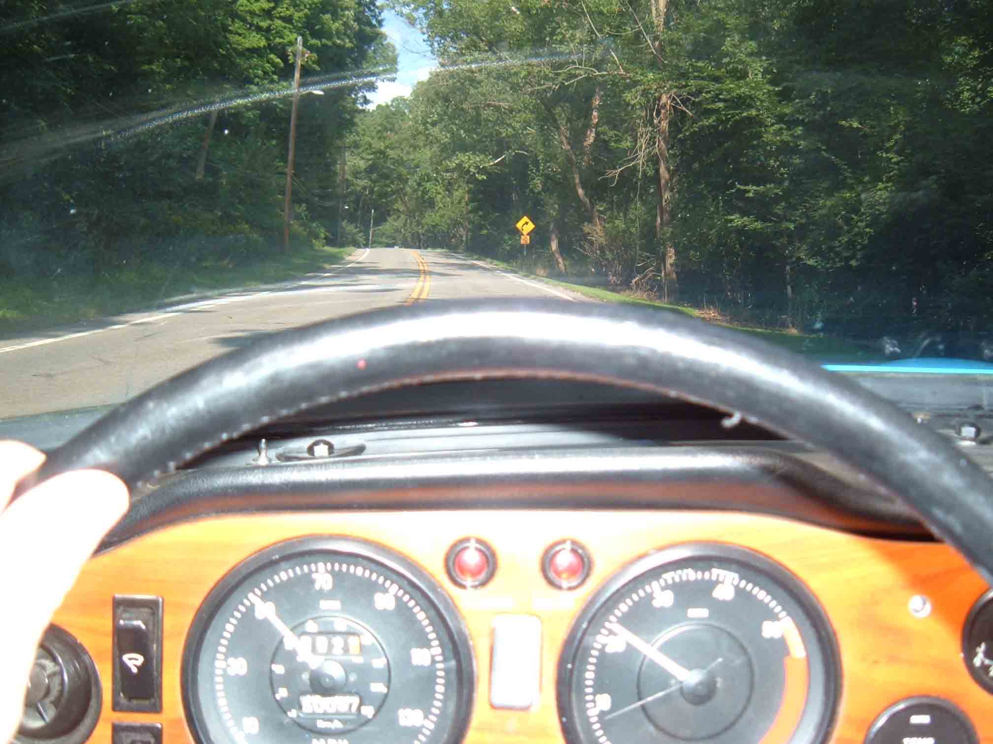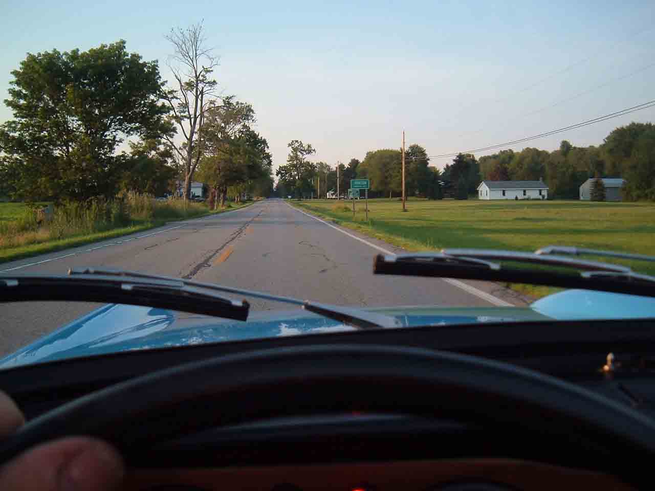 Yes, a pretty big road by local standards. This is the road across the Lammermuir Hills, looking north towards the Firth of Forth. You may be able to make out Traprain Law (the hill directly ahead), North Berwick Law (to its left) and The Bass Rock (the white island to the right, which is covered in gannets). These are all volcanic remnants. Edinburgh is 20 miles to the west.