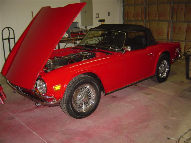 A little pointer on removing your engine/tranny. Tilt the whole car down in the front by using really short jack stands in the front, almost to where your sway bar touches the concrete. Will have to remove the front wheels to accomplish this. Then lift the rear with much taller stands. Not to the point that the whole thing wants to slide forward, but it will make the removal process a lot easier. Remember, you will have to maneuver the engine/tranny a bit, that is why you really need an engine hoist with wheels. If you are only using an overhead hoist, you will have to be able to push the engine around a bit in the air to clear everything. Not recommended, but doable. If the overhead hoist is all you have, then be prepared to lift the engine/tranny out, quite high, put your wheels back on and roll the car out of the way. My record for pulling a TR6 engine/tranny is 20 minutes, that is after everything was prepared and the hoist hooked up. Beat that! Have done it six times.