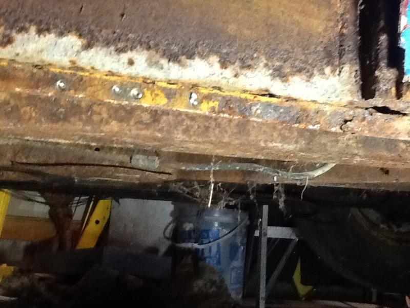 The sill, I can't pound my pointed body hammer thru it, so at the moment I'm thinking they are good. The previous owners had a wood floor over the rotten floor, and then more metal pop riveted to the rotten floor, the original floor is like Swiss cheese.