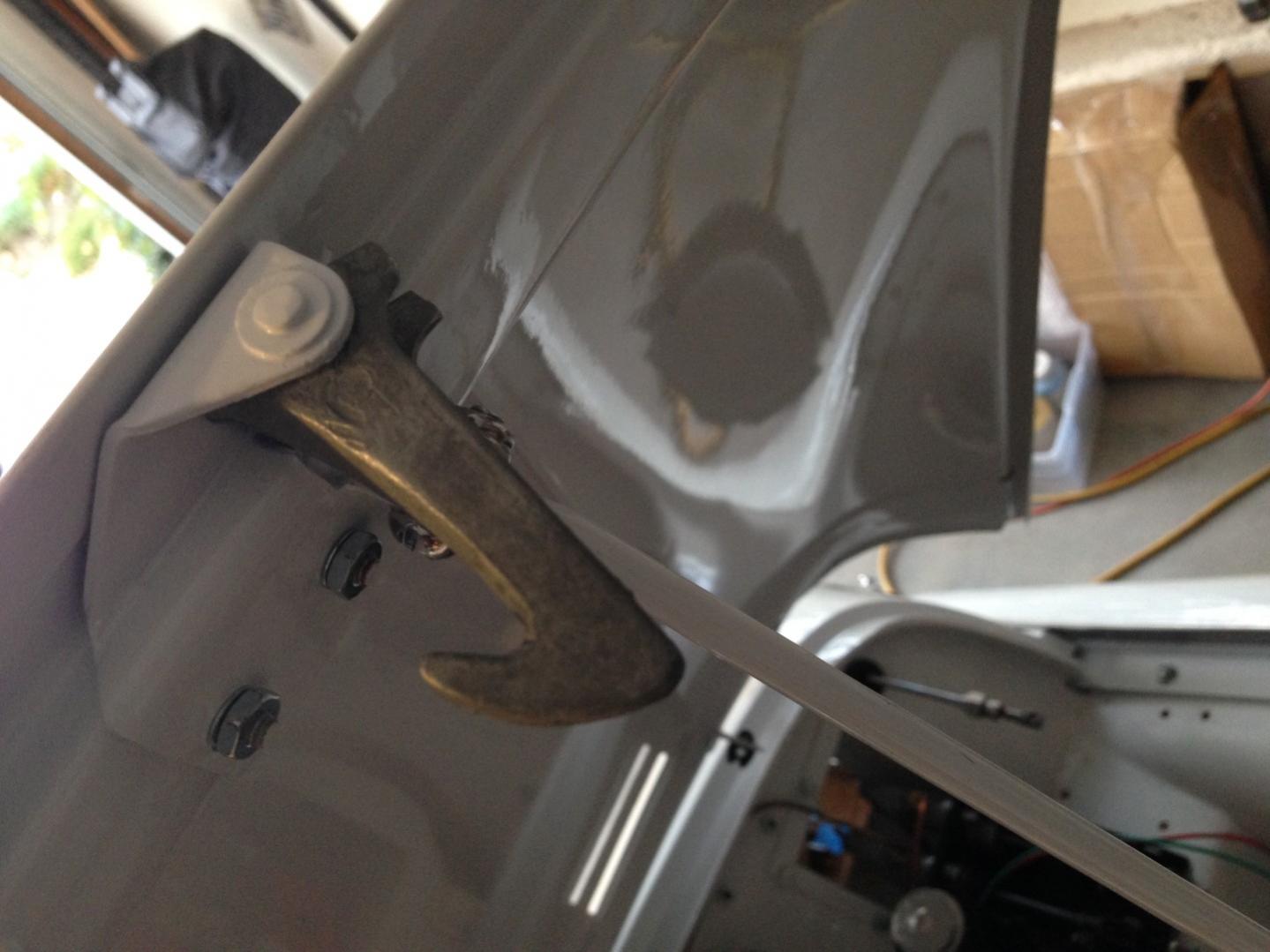 Closing in on the finish of my restoration. Took her for a stroll on the court yesterday. And the rattle under the hood is enormous. I think I've isolated it to the hood catch hook. Any thoughts on how to make this thing not rattle too much? It is definitely loose on the pivot. Thanks in advance for the innovative ideas.