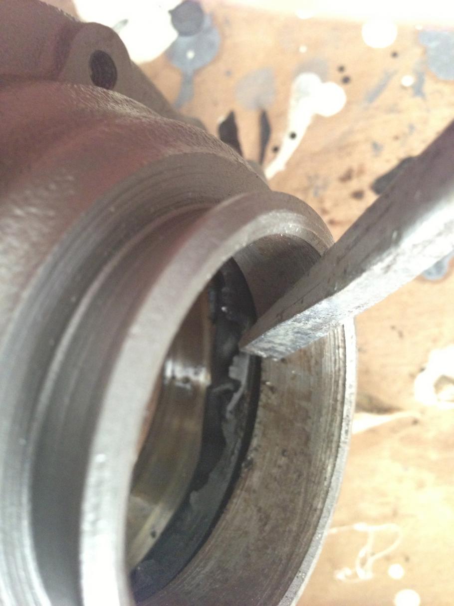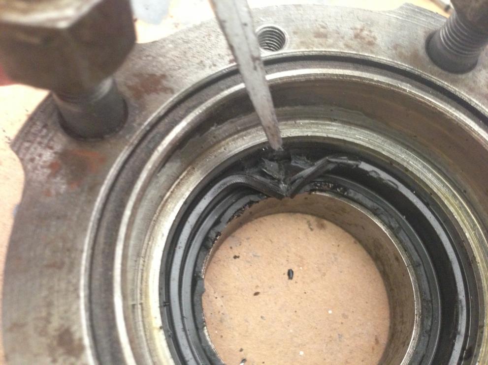 a. cut away the rubber lip of the lip seal (I used the chisel).