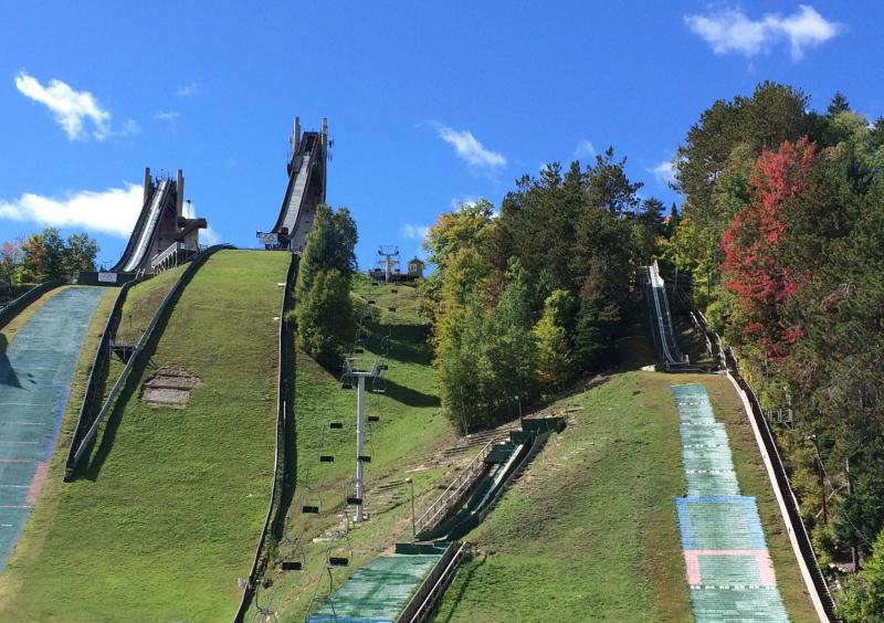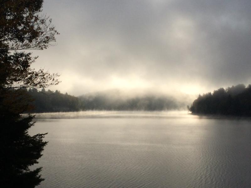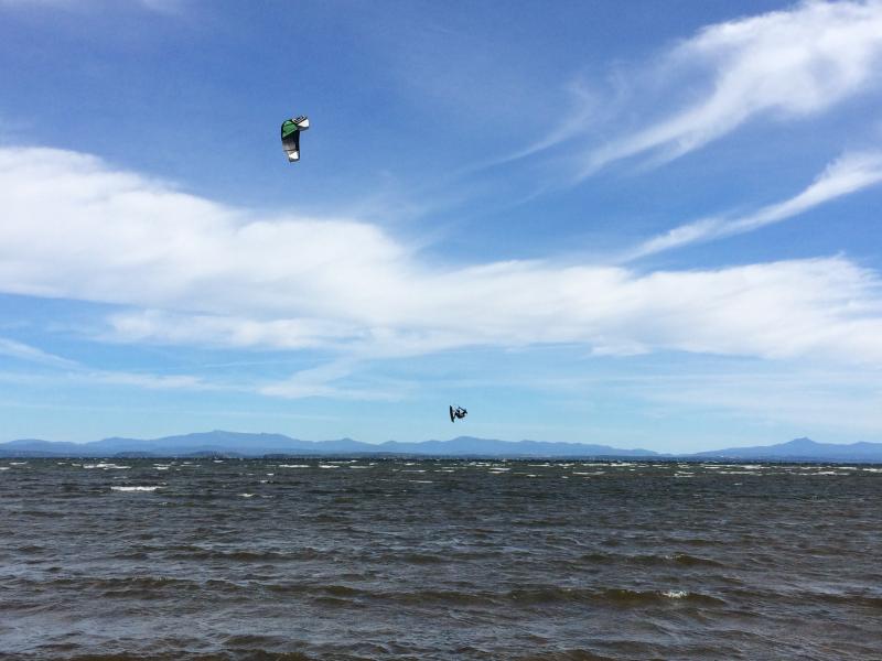 No Canada this trip, we headed south to Adirondacks, hiked up Bear Mountain where took shot of Cranberry Lake where we camped. Lake Placid 1980 Olympic Events drive thru. Currently west shore of Lake Champlain watching kite boarders. Green Mountains of Vermont in background where the ferry will take us tomorrow.
