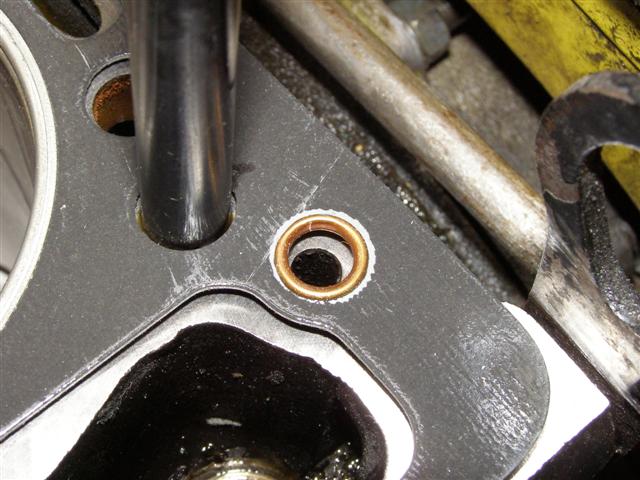 The plug I'm talking about is in the back of the cylinder head; item AK9 in the TRF diagram . This is the lateral oil passage through the head, that feeds the rocker shaft, and the only access without removing the head.