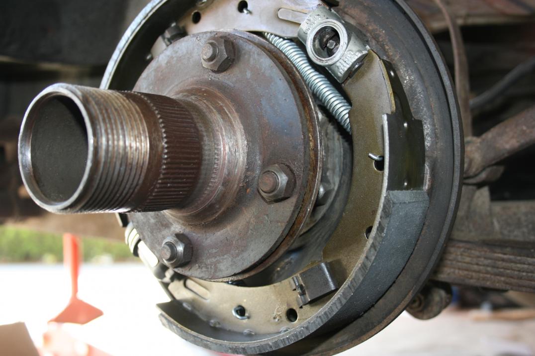 I'm learning bit by bit about my '63 TR4 wire wheel, tinkering, I guess you could call it. I'm currently working on the front brakes and have taken off the rotor,hub and splined extension. If it helps anyone out there I removed the dust cap with an easyout, broke the cotter pin, undid the nut and took the whole assembly off the stub axle in one shot. I then clamped the old rotor to a vise and separated the various parts for cleaning. I found this to be way easier than trying to separate anything whilst on the car.