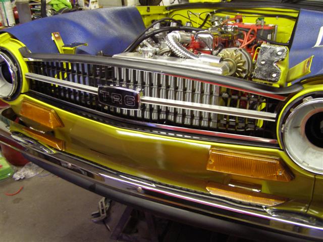 Got a quick question about my girlfriend's 1971 TR6. We installed a new grill, and we're trying to figure out how the long rubber seal on top of the grill fits. Does it fit behind the grill, or in front of the grill? It seems that it won't fit behind the grill, but if it sits in front of the grill, it doesn't look quite right.