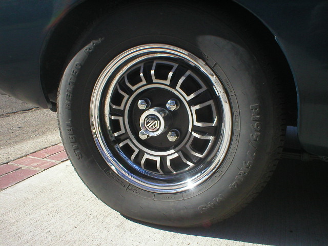 I've got the stock "LE" wheels on mine, I think Moss still has 'em. Tires are Bridgestone 195 70R14