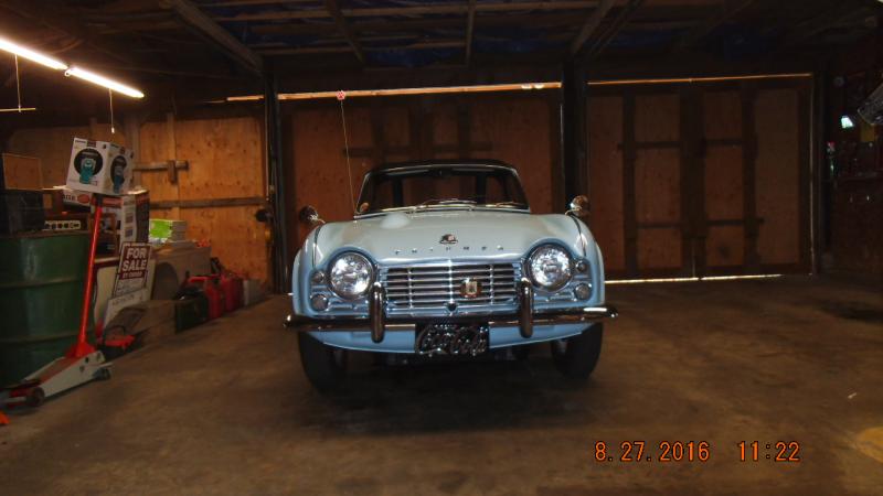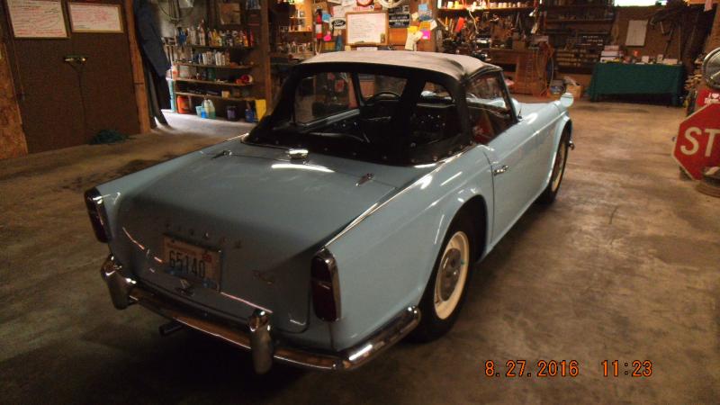 So today I decided to put on the new soft top that came with the 1964 TR4...hummm...very tight fit here...tug tug...still tight...ahha...hair dryer on high applied to where the soft top snaps in and voila...fit like a dream...Marla