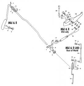 Folks: I've very close to finishing a three year restoration with a looming national show and just discovered I don't have my original adjustable control rod - the link between the accelerator pedal shaft and carb (see Number 16 in the attached plate). Is anyone parting out a 69 or 70 GT6+ engine? I can't believe I've misplaced this thing (more likely it wasn't attached when they were returned from restoration over two years ago and I didn't notice!). I have a pic of the carbs out of the box and no link!