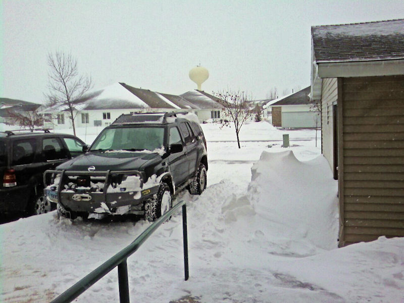 Snow was up to the hood of my truck and packed under it. Took 4low and I had to lock the rear axle to get out. At 8pm last night the area was snow free and now it looks like a winter wonderland and this is heavy wet snow which we dont need. Almost all the plows are being used for the flood so the roads for the most part of the day were 4x4 only.
