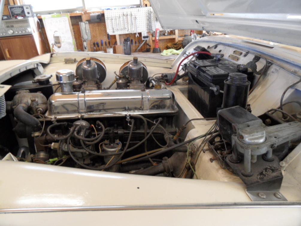 There is no evidence that the engine has been rebuilt. Compression is an even 110+ . Oil pressure 50# cold, 30# at idle, hot. Left the factory with an overdrive that was replaced with the standard 4 speed at some time in its past. New clutch etc. Shifts fine. front susp. rebuilt and all new brake components.