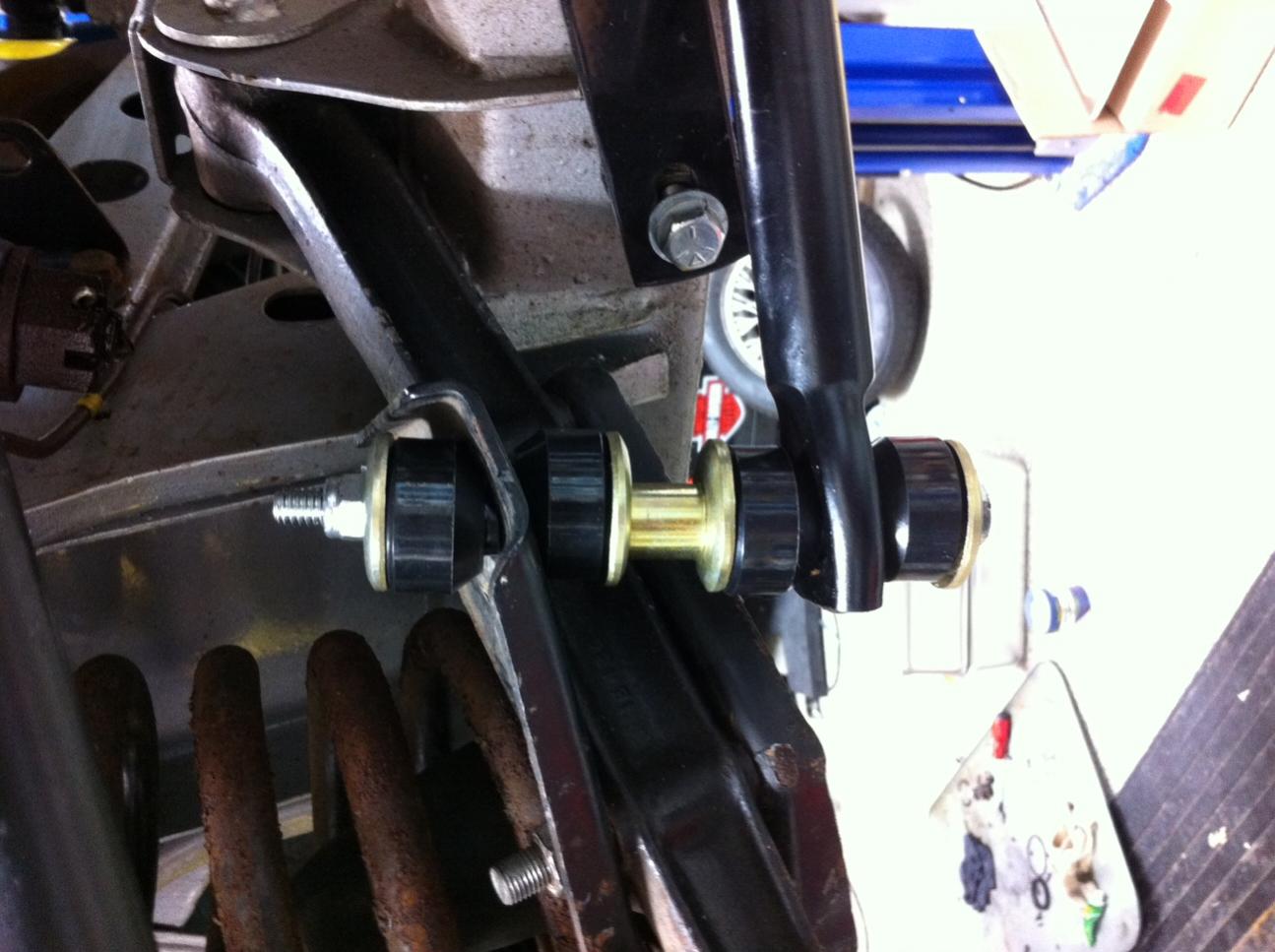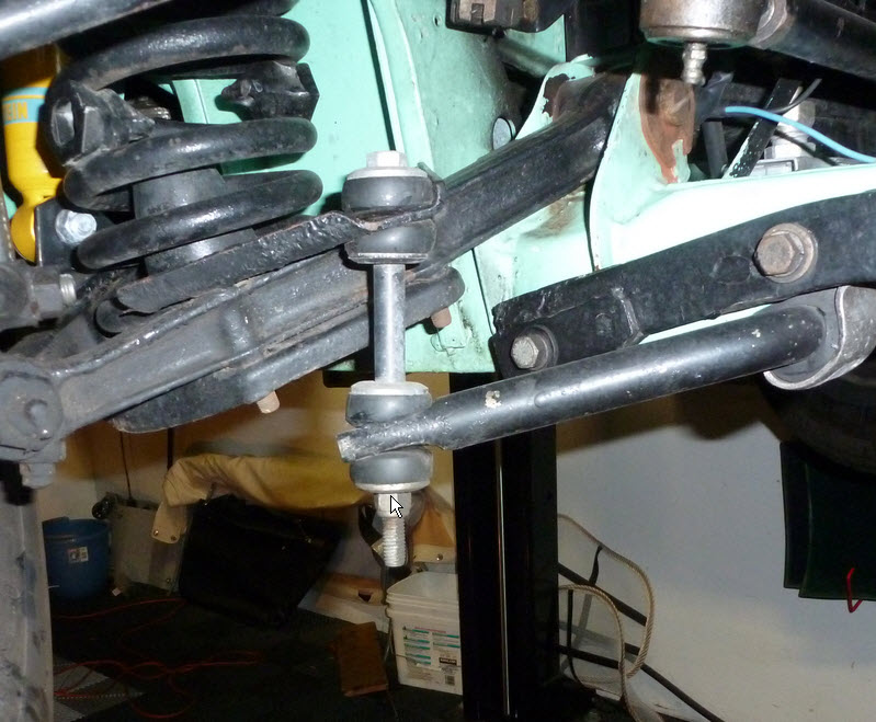 Installed a 7/8" sway bar that I bought from Victoria British and while I had the shock valving out I moved the suspension up and noticed the sway bar was hitting the front bumper mount when pushed up past level. Yes the bar is centralized and it appears the former owner had installed a new bumper and mounts. Anyone else run into a similar problem? Photo shown is when the suspension is fully extended down.