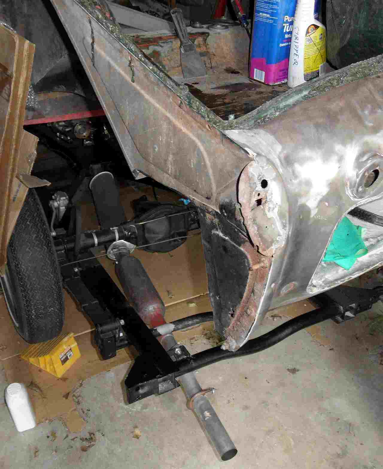 Today while waxing the TR6 in garage, I heard a new sound. It sounded like that of a can that had become de-pressurized, and wrinkled. Sort of like a can popping from the other side of the garage. I checked the work bench, looked around and decided things needed cleaned up a bit, and started to do so. A few hours later, I smelled something strong. It was coming from the front of the garage. I’m stripping the TR3 tub (when time permits). It is resting on a wooden frame above the finished rolling chassis. I’ve been using the stripper outside for doors and wings and the remaining ¼ gallon can was resting in the TR3 trunk. The temperature reached 92 in the garage today. Apparently the can couldn’t take the heat or pressure and popped a hole. The hole drained into the trunk –which needed stripped, but the rust holes in the trunk allowed some to drip onto the muffler and onto the rear round frame cross member. The muffler was only stripped to primer, but my frame was stripped to bare metal. It’s easy enough to fix, but I’d rather be doing something new, instead of something over again.