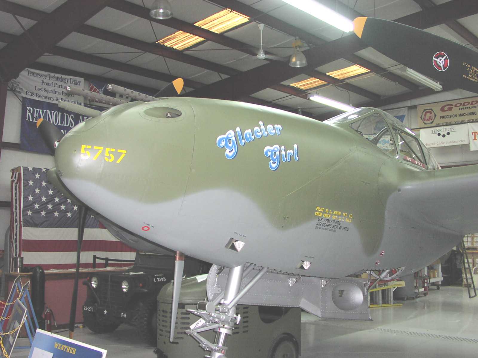 The P-38 fighter "Glacier Girl" was one of the planes in the largest forced landing in Army Air Force history, "The Lost Squadron". <snip> It has since been restored and christened "Glacier Girl". To date, this is the only aircraft recovered from The Lost Squadron. <snip> Keep 'em flying.