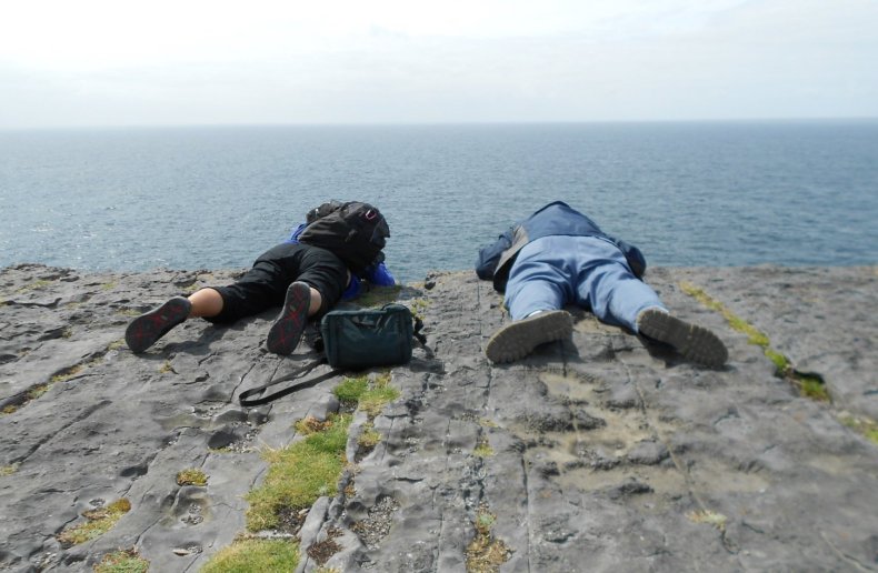 Off the west coast of Ireland (on the island of Inishmore), there is a cliff that is 300 feet absolutely straight down. I couldn't get within 15' of the edge (as the wind was unpredictable). I couldn't even lie on my belly to creep to edge. Nope, not worth it.