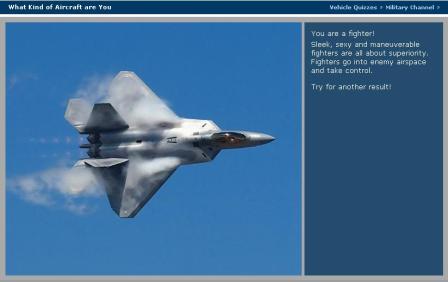 A Fighter!!! And yes, it said "remind me never to make you mad". But...I'm actually a helicopter pilot (and piper cubs and twin engine airplanes) so go figure.