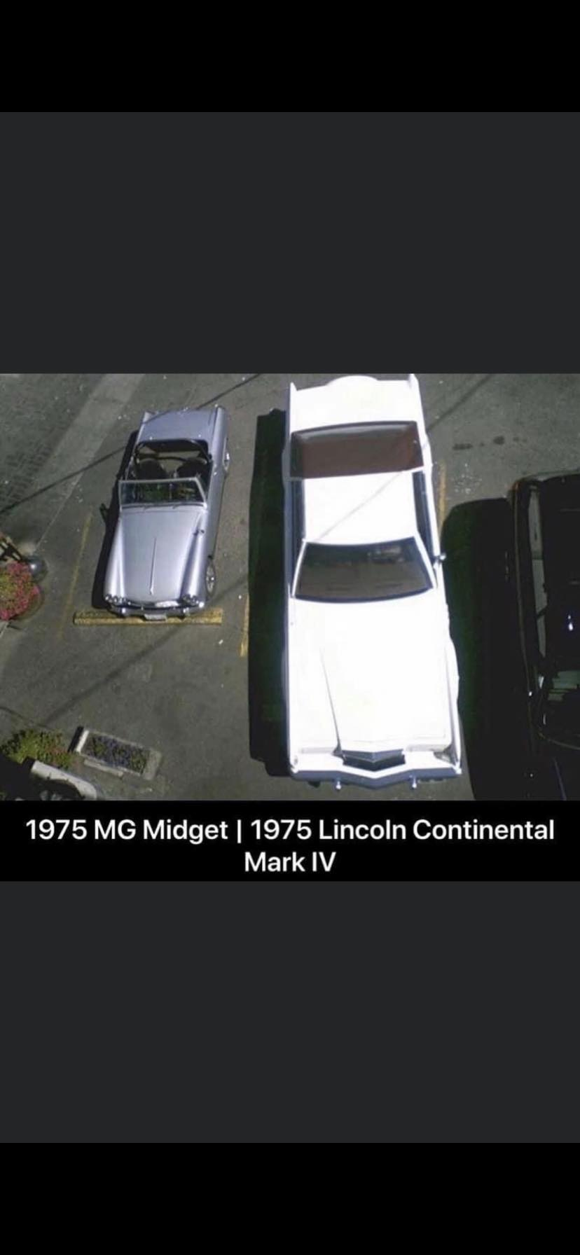 When I parked the Midget next to the Miata,it really made the Miata look big.I brought my TR4A to my mechanic yesterday. I parked next to a Fiat 500 (vintage)… I finally felt “big”!!