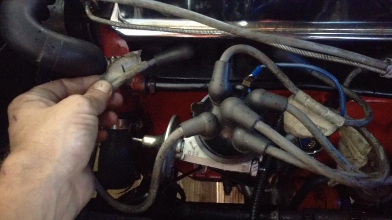 The second type of timing light...is just an electrical test light. For this one, it is not designed to take the thousands of volts in the high tension side...so it goes on the low tension side of the distributor. One side of the simple light goes to the Negative on the battery (assuming you are still positively grounded). The second side will clip to the wire coming out of the distributor...and it can be on the coil.