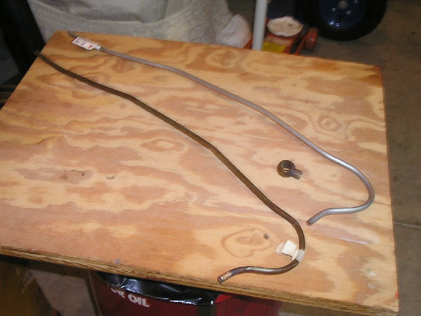 My vent tube was wuthless because of its extended service, also unobtanium, so a buddy of mine came over with a small torch and took the banjo fitting off the pipe. It was silver soldered on. This morning I went to the local parts house that I frequent and he came up with some brake line of the same size and then bent it into the correct shape. $5.00 thanks you. Brought it home my buddy silver soldered it back together and I'm back in business. A few pictures of the event, attached.