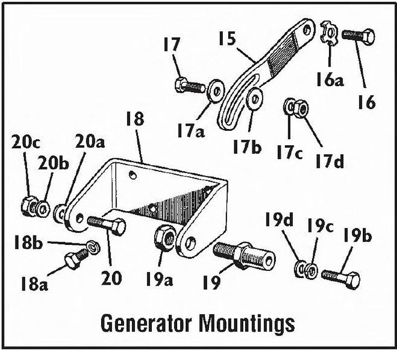 I also noticed that bolt #17 on my car is just long enough to go into the threated hole on the generator and does not protrude out far enough for a nut. Not sure which is correct as my car is pretty original.