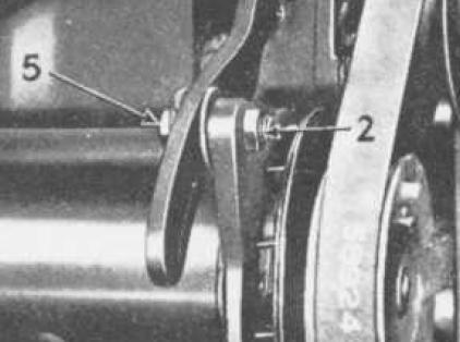 Maybe a diagram will make it clearer (cribbed from a Moss catalog). Bolt 16 will have to be loosened or removed, so that adjustable link 15 can be pivoted or removed. Items 18 and 19 do not have to be removed or loosened. Bolts 17, 20 and 19b have to be removed.