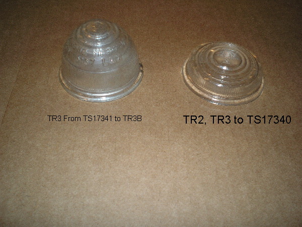 I have two NOS Lucas clear front flasher lenses. They go on TR2, TR3 to TS17340. They are in excellent condition. They are the sort of flat lens. What I need is the bee hive style clear lens as shown in the picture. Well actually they are both shown in the picture.