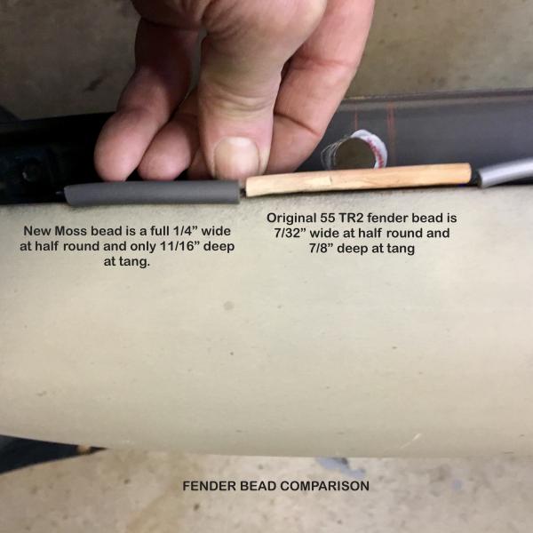 Here are several photos (if I can figure out how to attach them!) of original TR2 wing bead compared with several of the options available, including the two latest from Moss (grey) and Woolies (white).