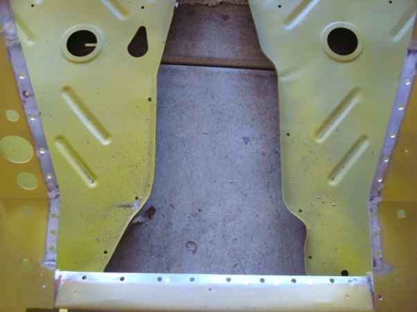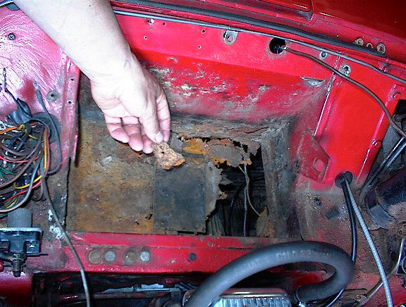 After contemplating how to get the box in, I just cut the section out at the front of the box. I replaced with new metal. It was the best decision for me at the time, as I needed the section up to the scuttle as my original was all rotted out, and the front section was pitted. If I had to do it over, I would probabley cut the front section out again. It was pretty quick to do that way, and once the new pieces were welded in, add a little lead and it looks like new...yes, all welded seams on my TR3 are leaded in. :thumbsup: