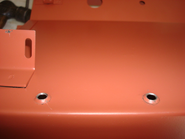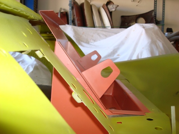 FYI the two holes in the back of your new battery box down near the bottom corner which are flared one way and for the flat-head screws you have to weld into place for securing the overdrive relay under the dash, up behind the heater.