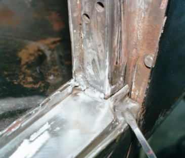 And this is the front "notch" in the outer sill after I modifed it near the A post while I was restoring my 1958 TR3A in 1987 to 1990.