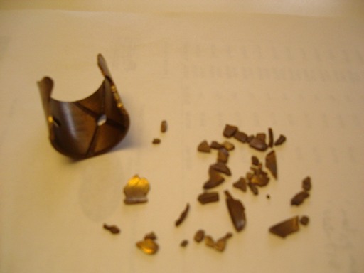 The larger piece of the bushing was still in the connecting rod. It had about 80% of the total circumference still in place. My measurements did not reveal any damage, but all the internal parts are off at the machine shop for them to measure for any damage. I'm sure their tools and experience will be a better check than my inexpensive calipers.